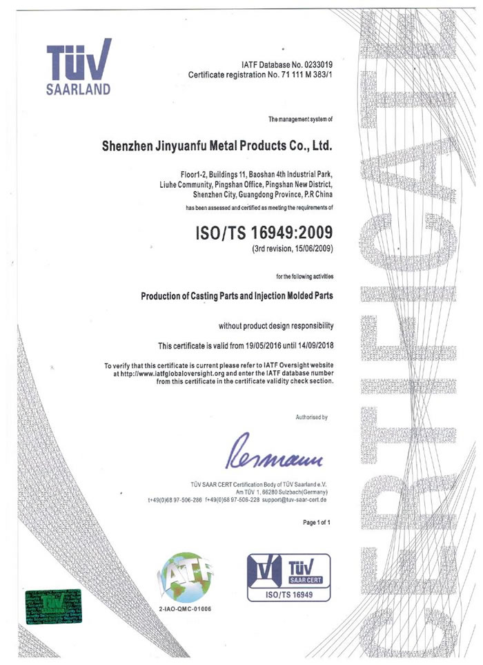 我們還通過了ISO/TS16949國(guó)際標(biāo)準(zhǔn)質(zhì)量體系認(rèn)證。